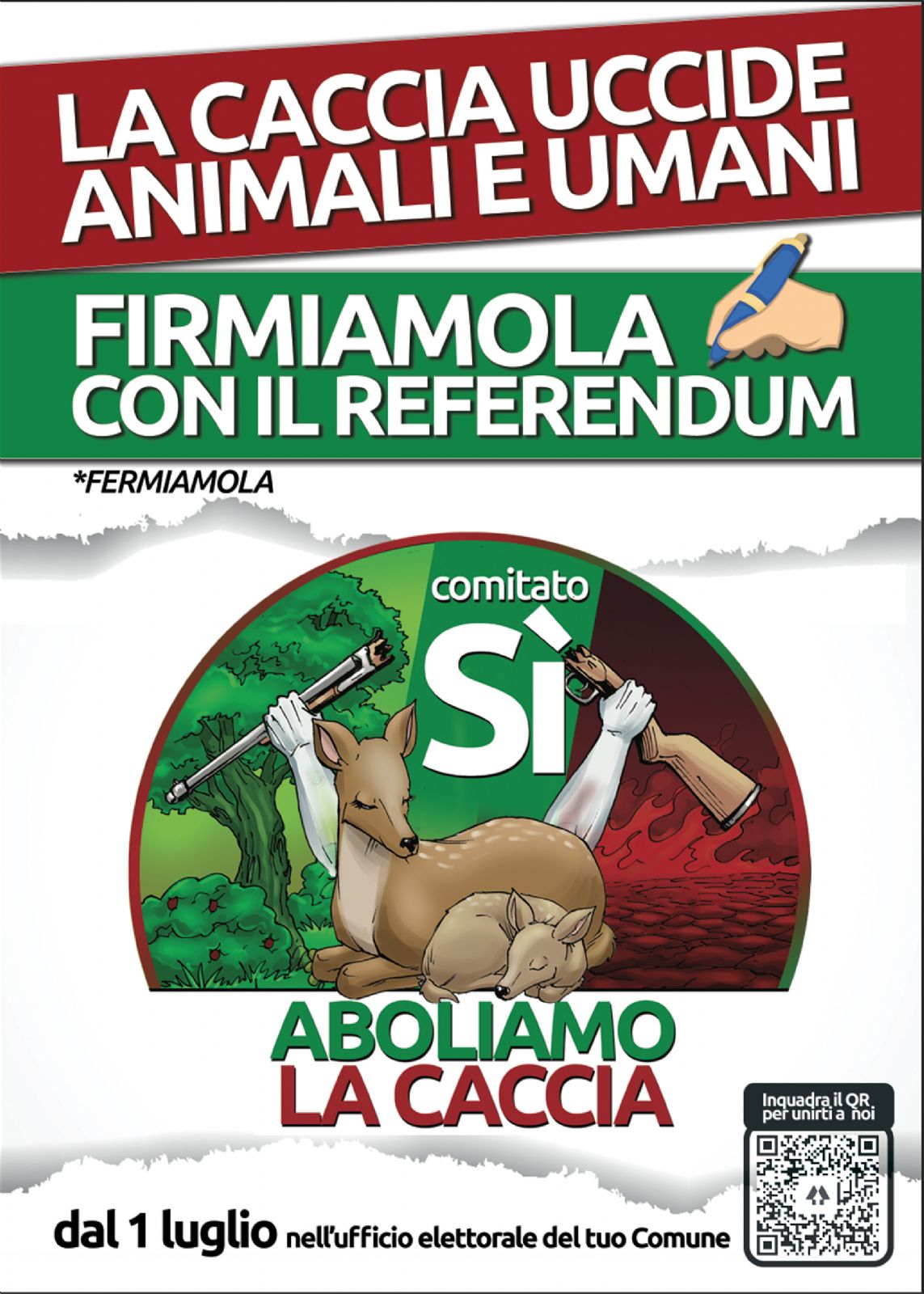Presso gli uffici comunali, nei consueti orari di apertura al pubblico, è disponibile il modulo raccolta firme relativo al Referendum per la modifica della legge 157 del 1992 - “Norme per la protezione della fauna selvatica e per il prelievo venatorio” - depositato dal Comitato Referendum "Sì Aboliamo la caccia" il 21 maggio 2021 e pubblicato in Gazzetta Ufficiale serie generale n. 121 del 22 maggio 2021.