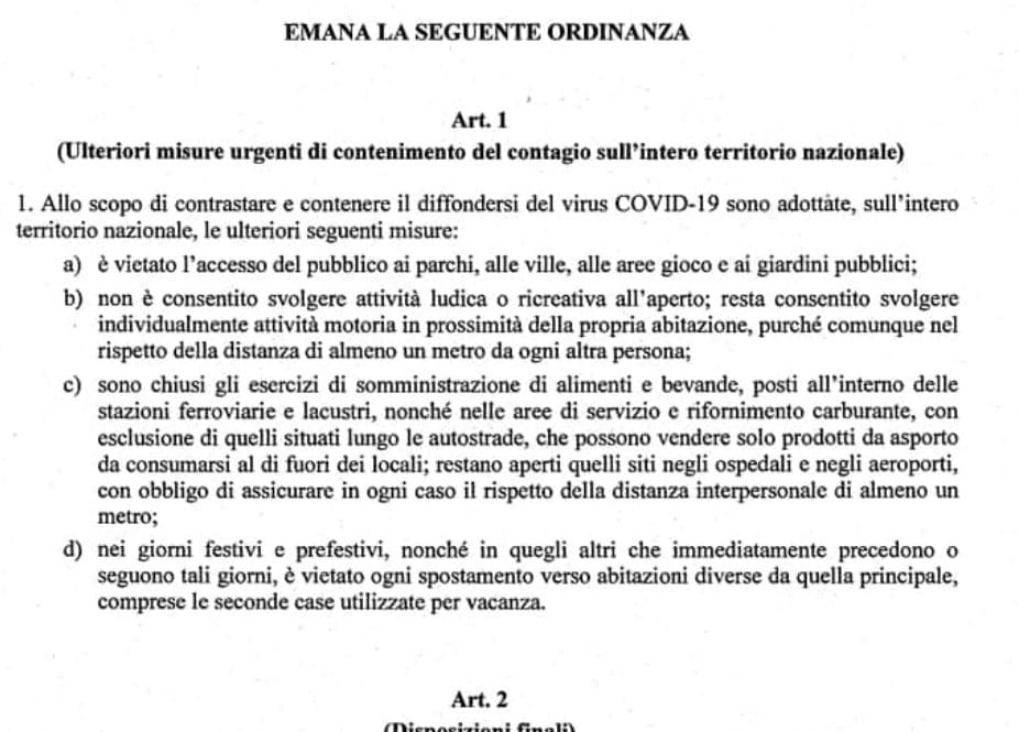 Il MINISTRO DELLA SALUTE ha appena diramato l'ordinanza che contiene nuove misure restrittive legate al contagio da coronavirus che valgono in tutta Italia dal 21 al 25 marzo: