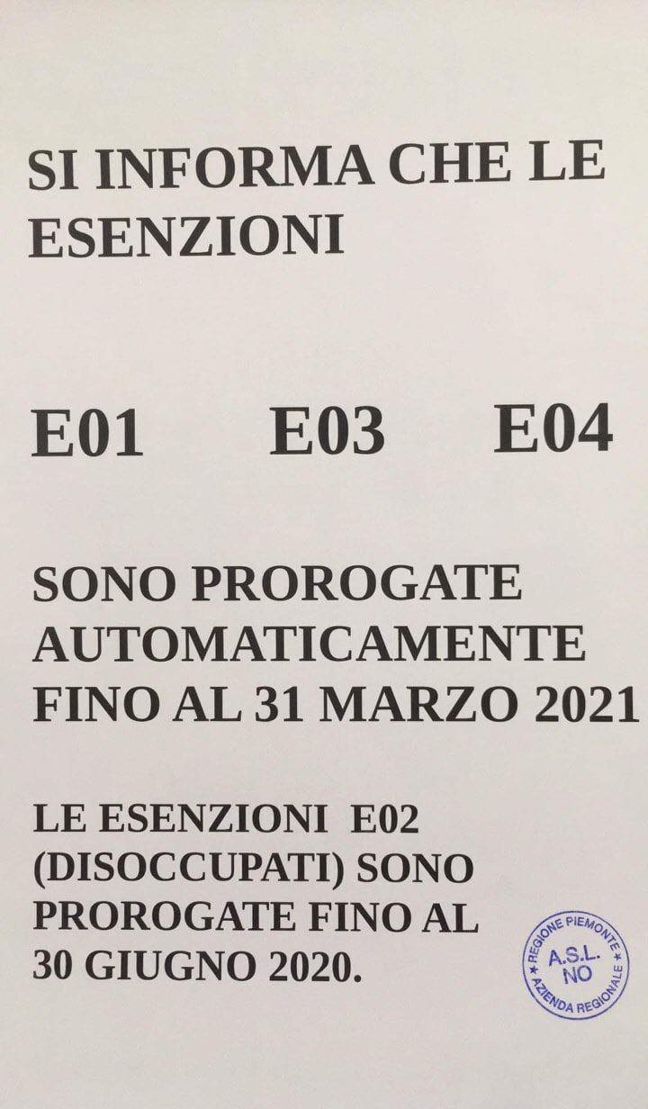 In considerazione dell’emergenza Covid 19 e quindi della necessità di evitare gli affollamenti agli sportelli delle Asl, la Giunta regionale ha deciso la proroga sino al 30 giugno 2020, per i cittadini in possesso dell’autocertificazione di esenzione con il codice E02: disoccupati e loro familiari a carico, con un reddito complessivo inferiore a euro 8.263,31, incrementato fino a euro 11.362,05 in presenza del coniuge ed in ragione di ulteriori 516,46 euro per ogni figlio a carico, in possesso di auto-certificazione valida sino al 31 marzo 2020.
