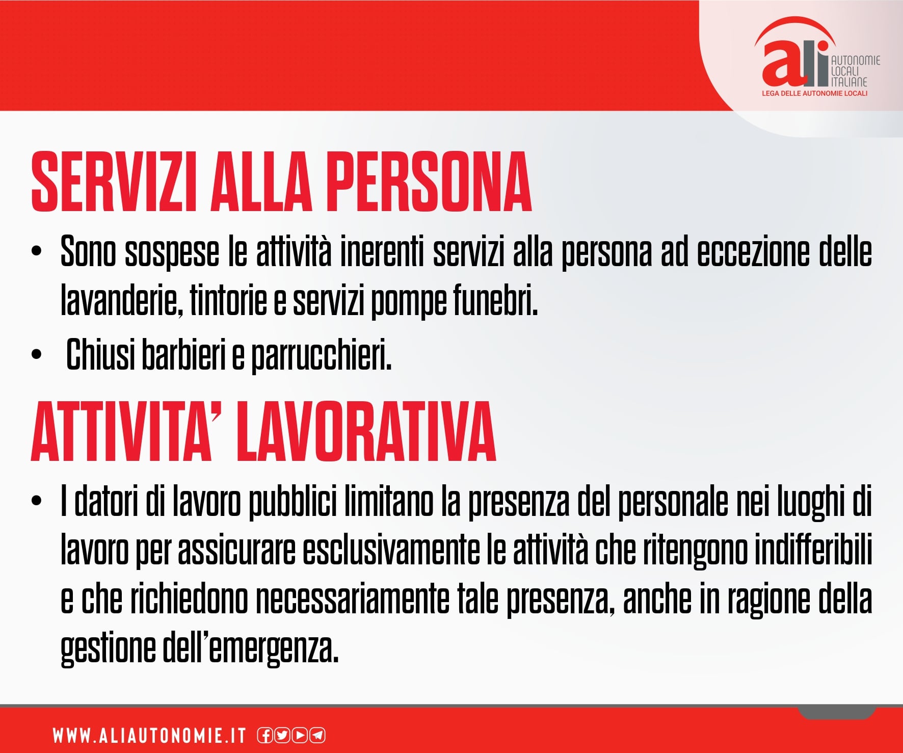 Sono sospese le attività inerenti i servizi alla persona, ad eccezione di lavanderie, tintorie, pompe funebri.